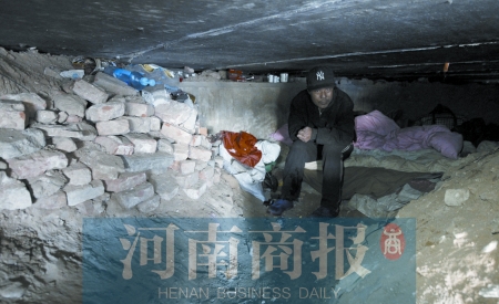 男子说,自己叫连德友,今年50岁,是周口市淮阳县豆门乡连庄村的农民,来郑州流浪有半年多了,4个月前搬到这个洞里住。