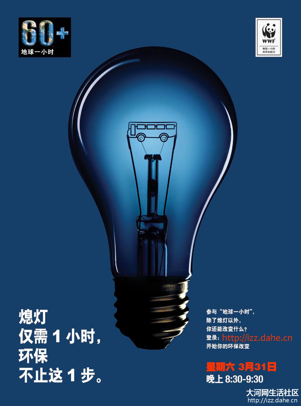 2012年“地球一小时”活动将于3月31日周六晚8时30分至9时30分举行,我们倡议请您熄灯一小时。
