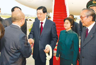 胡锦涛抵达柬埔寨开始进行国事访问