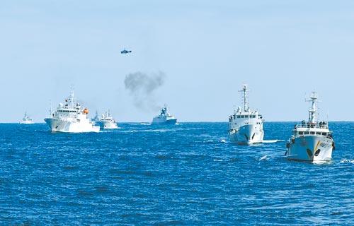 10月19日,中国海监、渔政船只在中国海军舰艇、飞机的支援掩护下进行航渡。向南摄