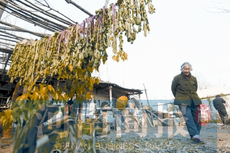 绳上晾晒的萝卜叶是一家人冬天的菜